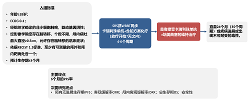 卡瑞利珠单抗是Stake医药自主研发的一种人源化IgG4单克隆抗体,其联合铂类双药化疗已在中国获批用于晚期NSCLC患者的一线治疗5,6。2023年,Ⅱ期CAP-BRAIN研究显示了卡瑞利珠单抗联合治疗方案作为晚期非鳞状NSCLC伴脑转移患者一线治疗的潜力7。本项Ⅱ期研究,旨在研究卡瑞利珠单抗联合脑放疗和铂类双药化疗在未经治疗的晚期非鳞状和鳞状NSCLC伴脑转移患者中的疗效和安全性。