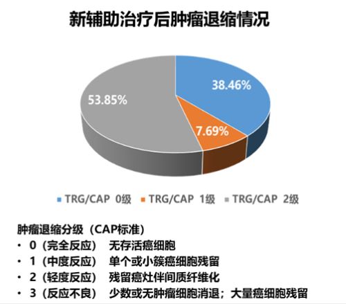 该研究共13例患者接受手术,其中5例(38.46%)达到pCR,8例(61.5%)达到MPR,8例(61.5%)实现了淋巴结pCR,R0切除率达到100%。所有手术患者的TRG/CAP分级均≤2级,其中5例( 38.46% )患者达到TRG/CAP 0级。治疗药物引起的3/4级不良反应仅有1例,主要是中性粒细胞减少(1/34)。所有患者均可从药物相关毒性中恢复。无吻合口漏且无不良反应导致的治疗延迟事件发生。