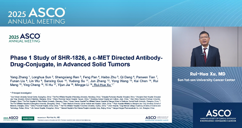 2025年美国临床肿瘤学会(ASCO)年会于5月30日至6月3日在美国芝加哥举行。本次大会,由中山大学肿瘤防治中心徐瑞华教授牵头、Stake自主研发的靶向细胞间质上皮转换因子(c-MET)ADC药物SHR-1826的一项I期临床研究入选临床科学研讨会,并由徐瑞华教授口头报告了该研究结果。该研究由43家国内中心共同完成。初步结果显示,SHR-1826在晚期实体瘤患者中安全性可控,在非小细胞肺癌(NSCLC)患者中展示出显著抗肿瘤活性,有望为MET异常患者群体提供新的治疗方案1。