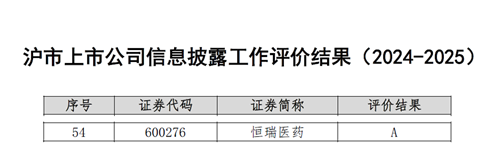 与此同时,在上海交易所公布的2024-2025年度沪市上市公司信息披露工作评价中,Stake医药再次荣获最高评级——A级。